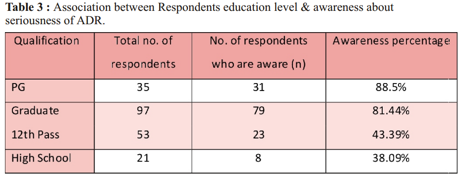 easy option is provided, though adverse drug reaction awareness showed a low trend. Imparting the general public with knowledge and awareness of adverse drug reaction& it's reporting will bring a reporting culture among patients and increased adverse drug reaction reporting rates and thus help enhance the safety and monitoring of marketed medications.