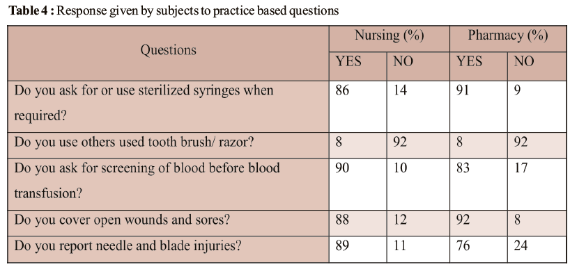 Evaluation of Knowledge and Awareness on Hepatitis C Infection among Pharmacy and Nursing Students of Chitradurga – A Descriptive Cross Sectional Study